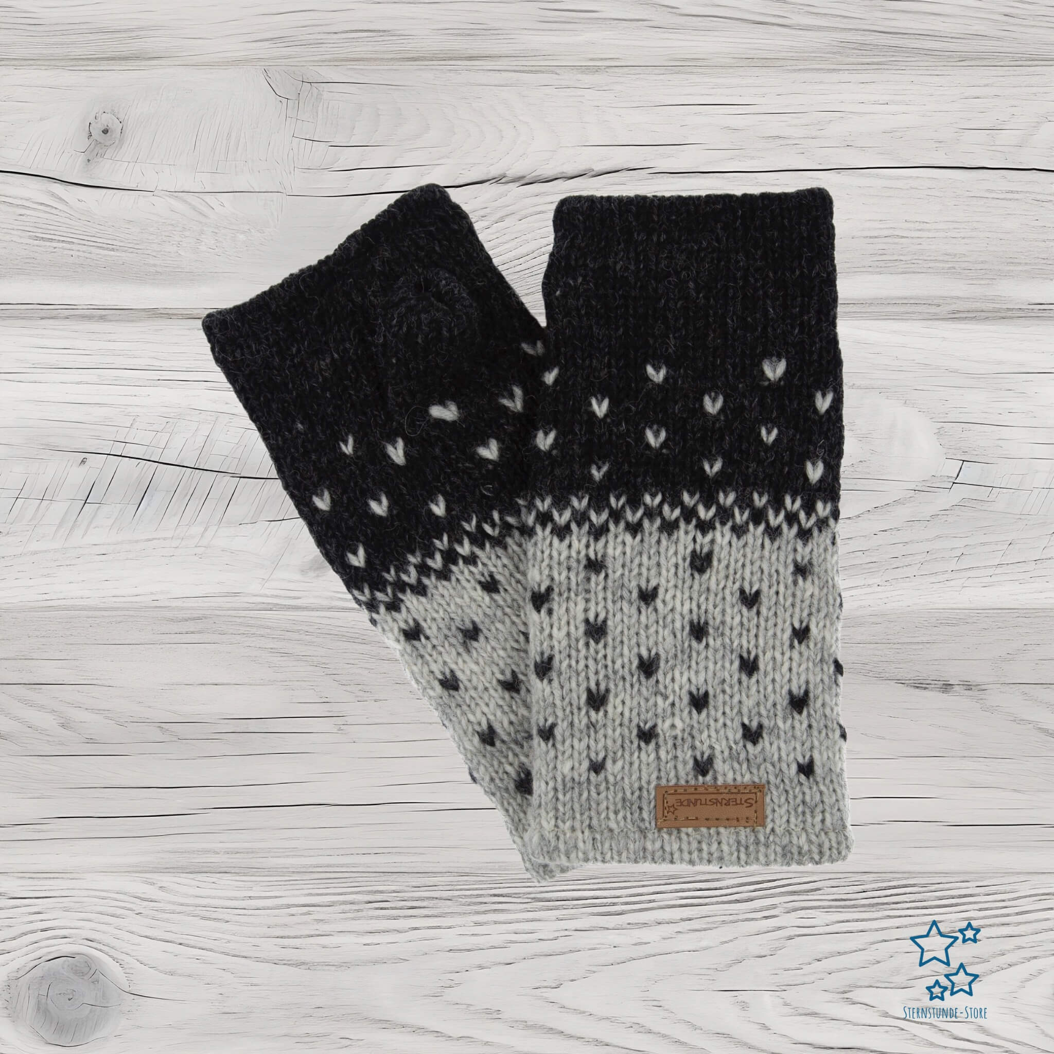 Woolen cuffs with Norwegian pattern – hand-knitted in Nepal (model Jascha)